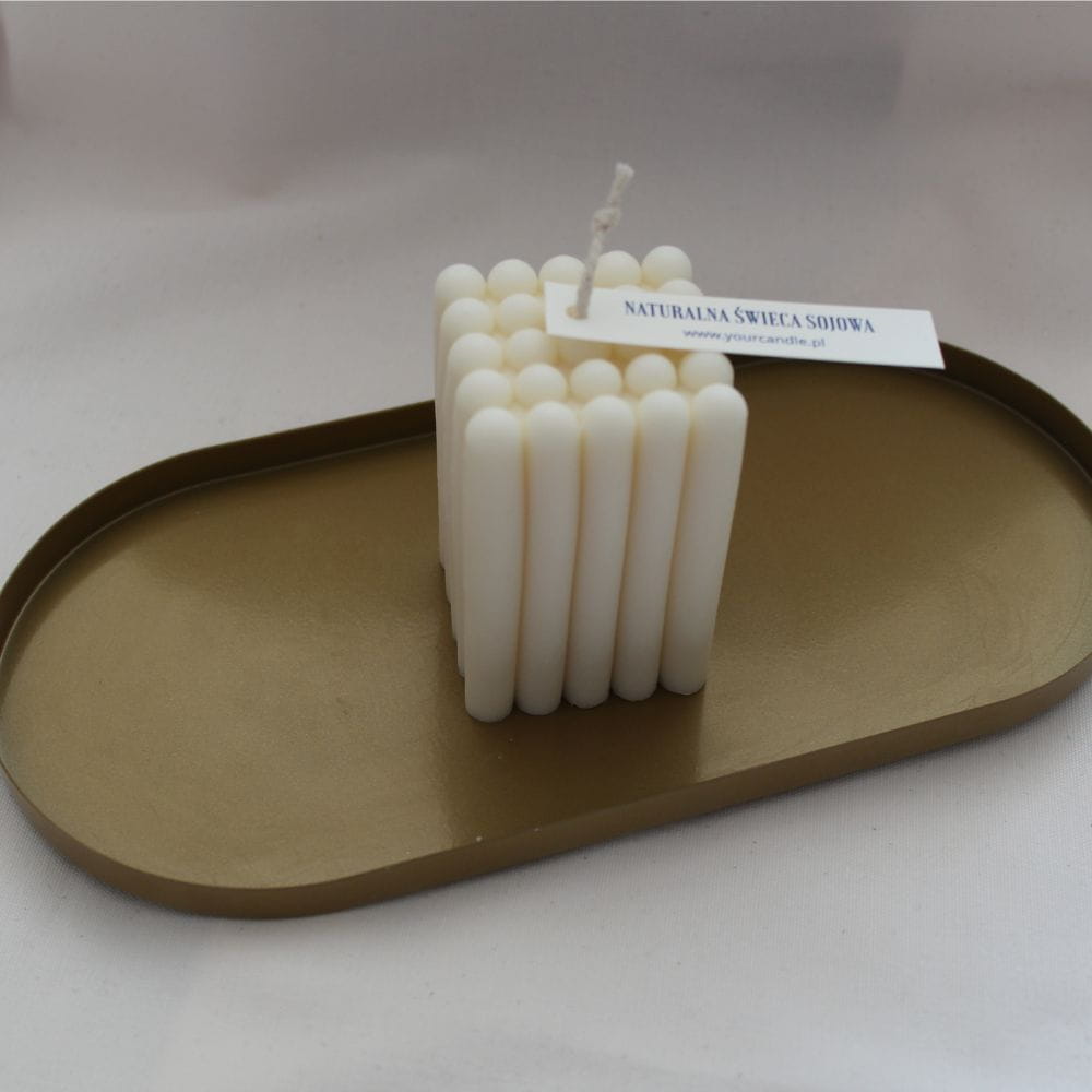 Naturalna, bezzapachowa świeca dekoracyjna ze 100% naturalnego wosku sojowego.